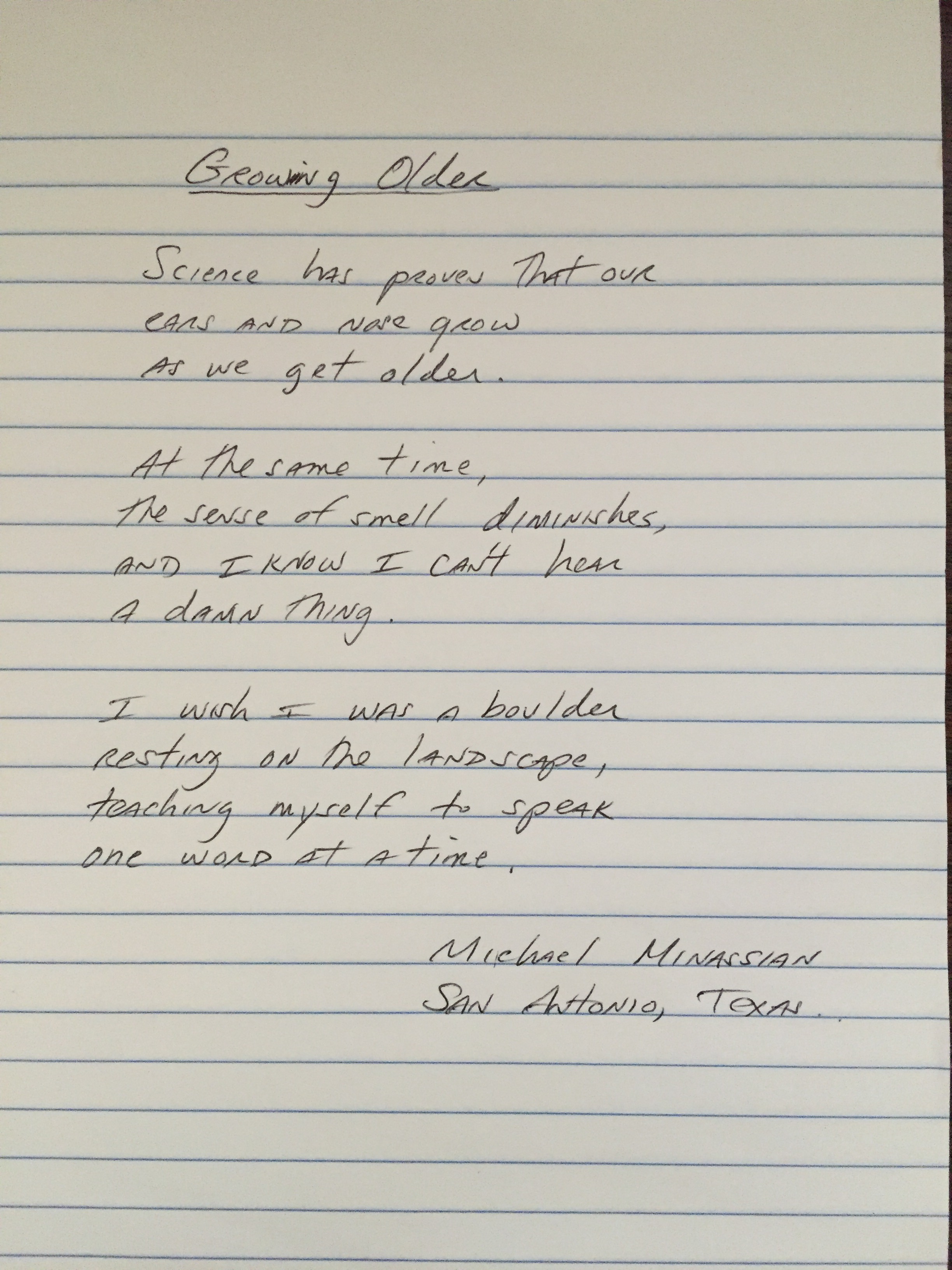 In honor of World Poetry Day (March 21, 2016), I submitted an handwritten poem to The Guardian and they published it on their website: